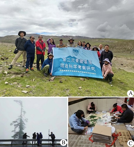 图3:本次青藏科考工作照片。(摄影:A蒋红飞、B杨静、C刀志灵) 本次考察,队员们不畏艰难,顶住了蚂蟥蚊虫肆虐和高原反应带来的不适,以超强的毅力和耐心顺利完成了科考任务;但是,由于雨季塌方多发和边境疫情防控形势依旧严峻,喜马拉雅南坡和部分边境地区未能到达,需要进行补充调查。 致谢:本次野外科考得到了各县市林草局、科技局和国家级自然保护区管理局,边防派出所等单位的领导、同仁的鼎力支持和帮助,在此致以真诚的谢意。