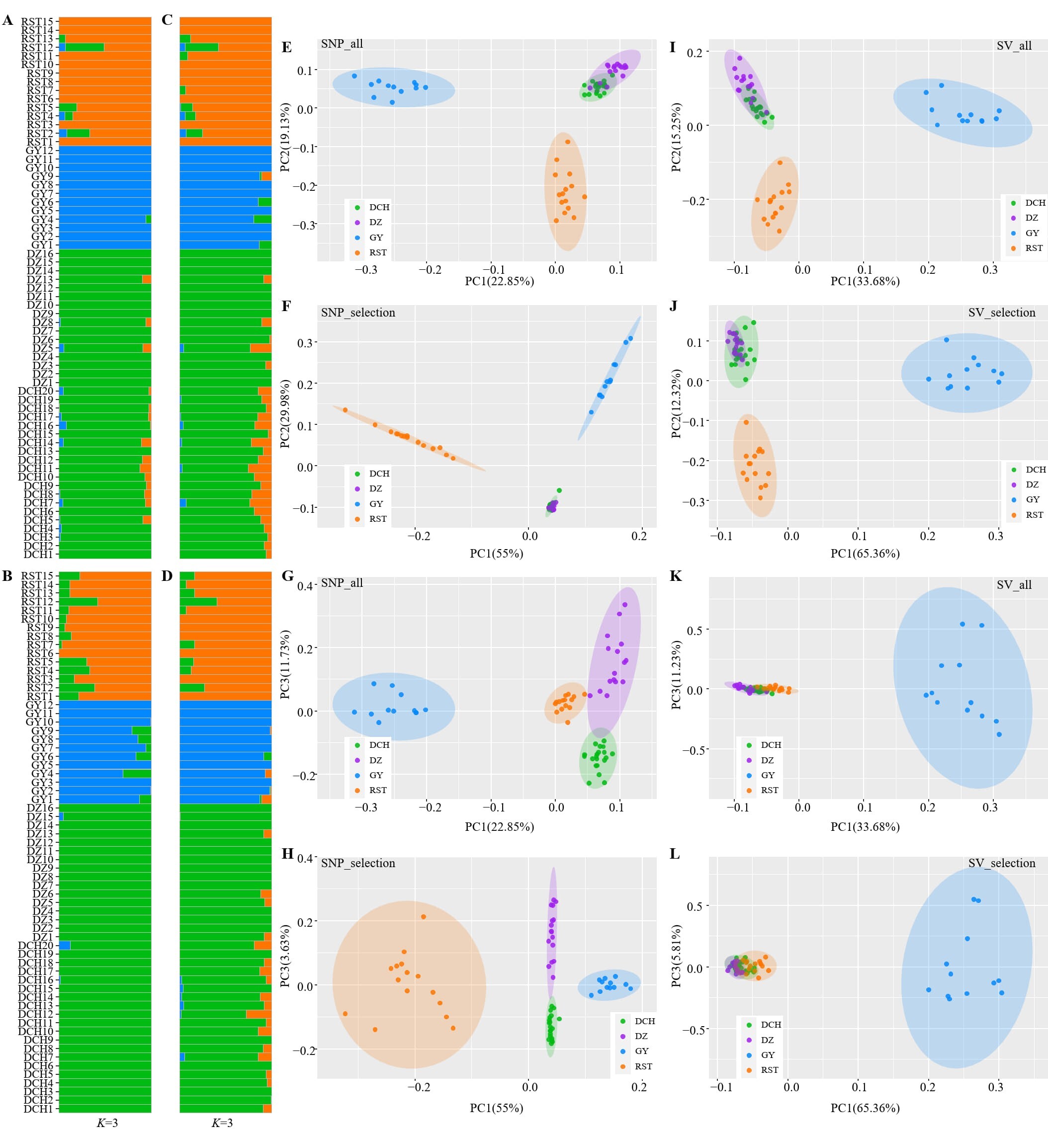 极小种群野生植物普遍具有分布范围狭窄、种群规模小、个体数量少等典型特征。朱红大杜鹃(Rhododendron griersonianum Balf. f. & Forrest)被列为极度濒危(CR)和国家II级重点保护,也是典型的极小种群野生植物;野外目前仅知共4个种群、500余株。前期研究发现,朱红大杜鹃正面临遗传多样性极低、纯合有害突变数量多、近交严重等多重困境(Plant Journal, 2021, 107: 1533–1545)。 为划分保护单元、科学制定保护策略,近日,昆明植物研究所保护园艺学与种质创新研究组从朱红大杜鹃4个种群采集样品,利用全基因组重测序技术,分别基于结构变异(SVs)和单核苷酸多态性(SNPs),分析了种群间的遗传分化、基因流及近期有效种群大小。 研究结果显示,基于SVs和SNPs所得的种群遗传分化系数(FST)、种群遗传结构、以及受选择性位点附近的基因功能富集结果存在明显差异。当基于SVs时,FST更大、个体间的遗传混合更多,受选择SVs相关基因富集于对非生物刺激的响应和缺水胁迫响应,而受选择SNPs相关基因则富集于脂质代谢过程。表明在保护基因组学研究中,尤其对于朱红大杜鹃等狭域分布的极小种群野生植物,仅靠传统SNPs分析可能会漏掉遗传结构与适应性信息。因此,我们建议在未来保护基因组学研究中,同时分析SNPs与SVs,以获取更全面的遗传背景,为科学保护提供更多依据。