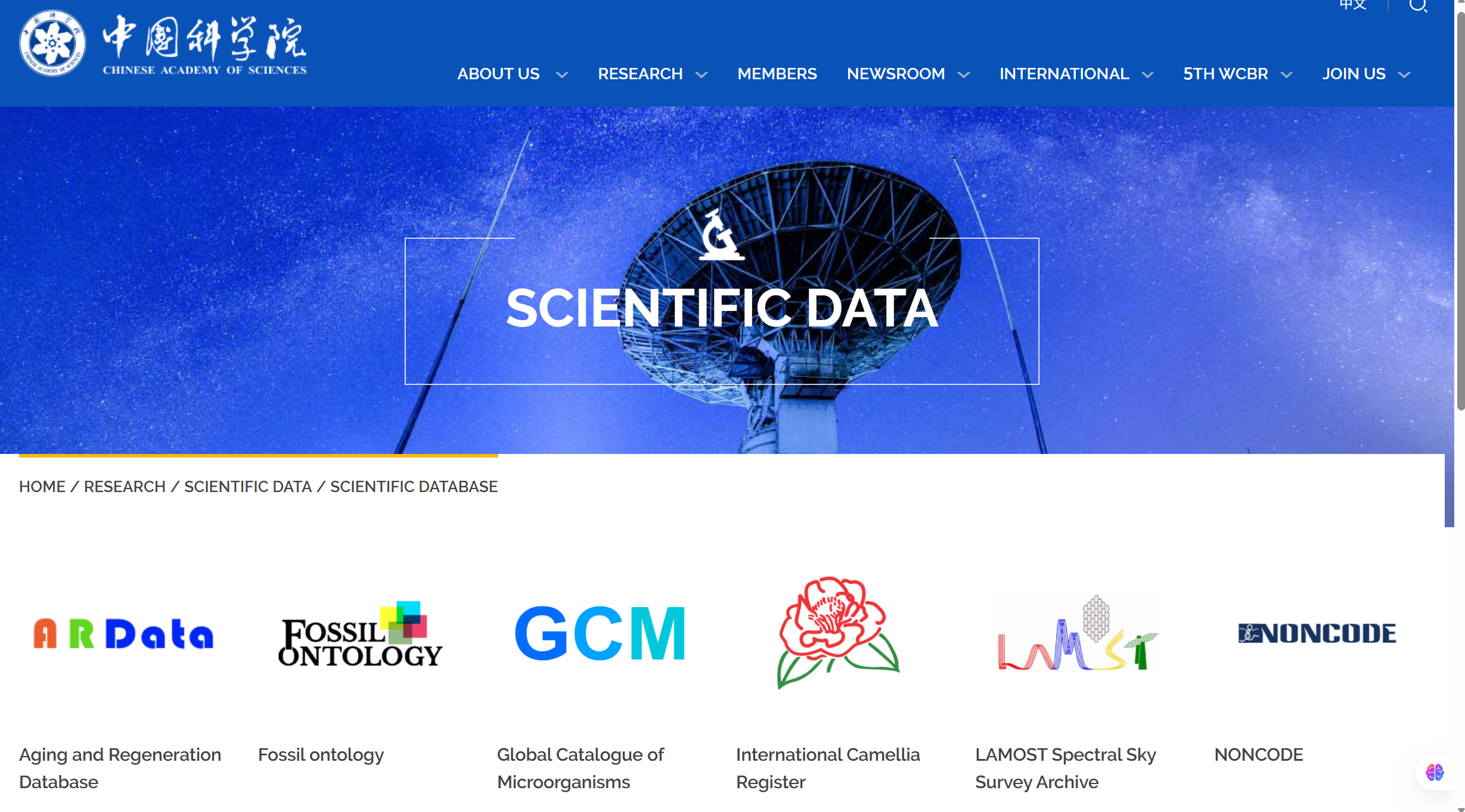图4:中国科学院英文官网推荐的科学数据库 编辑:陈智发 |