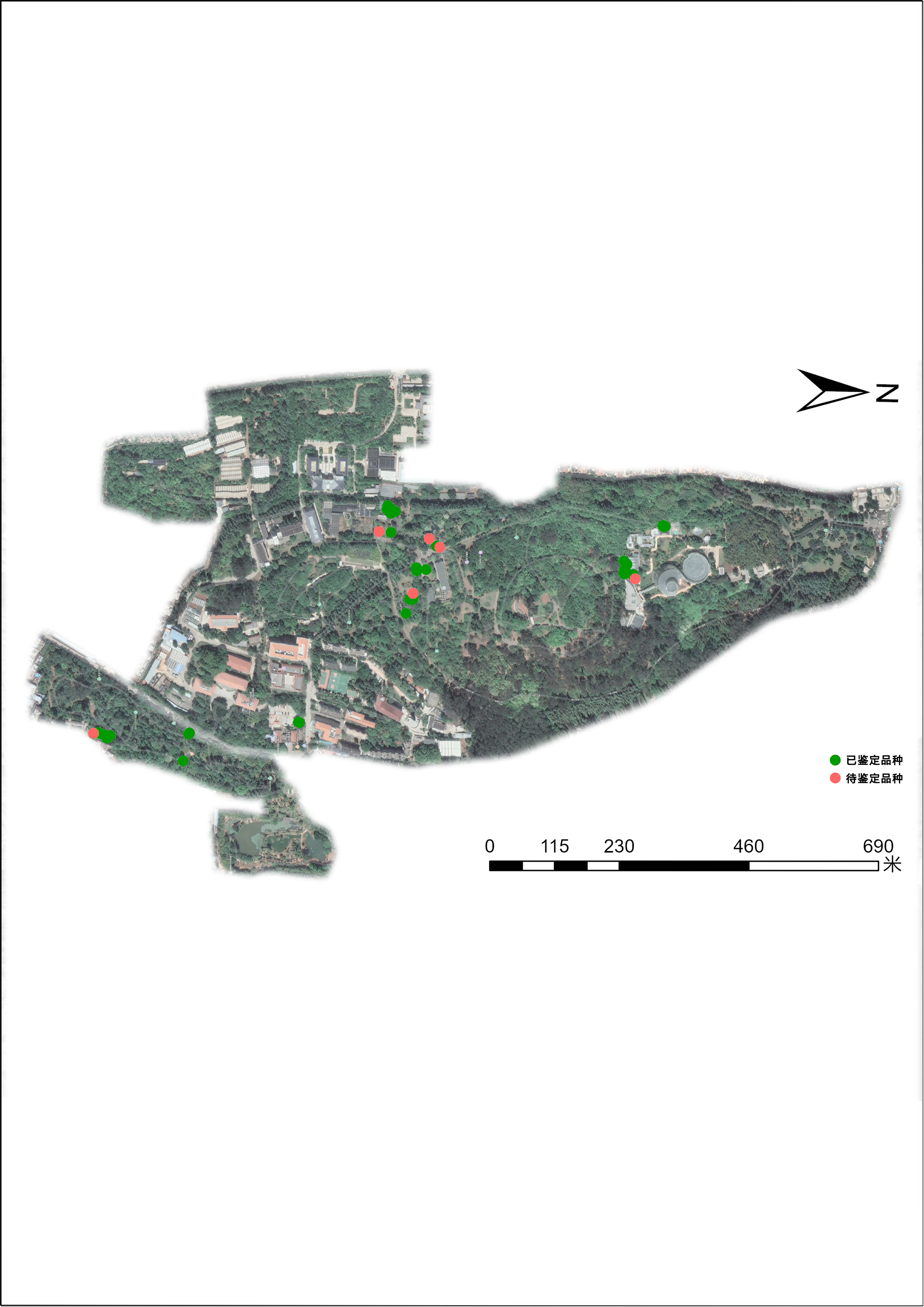图2:我园现有48株梅花植株定植空间分布(制图:朱亚杰)