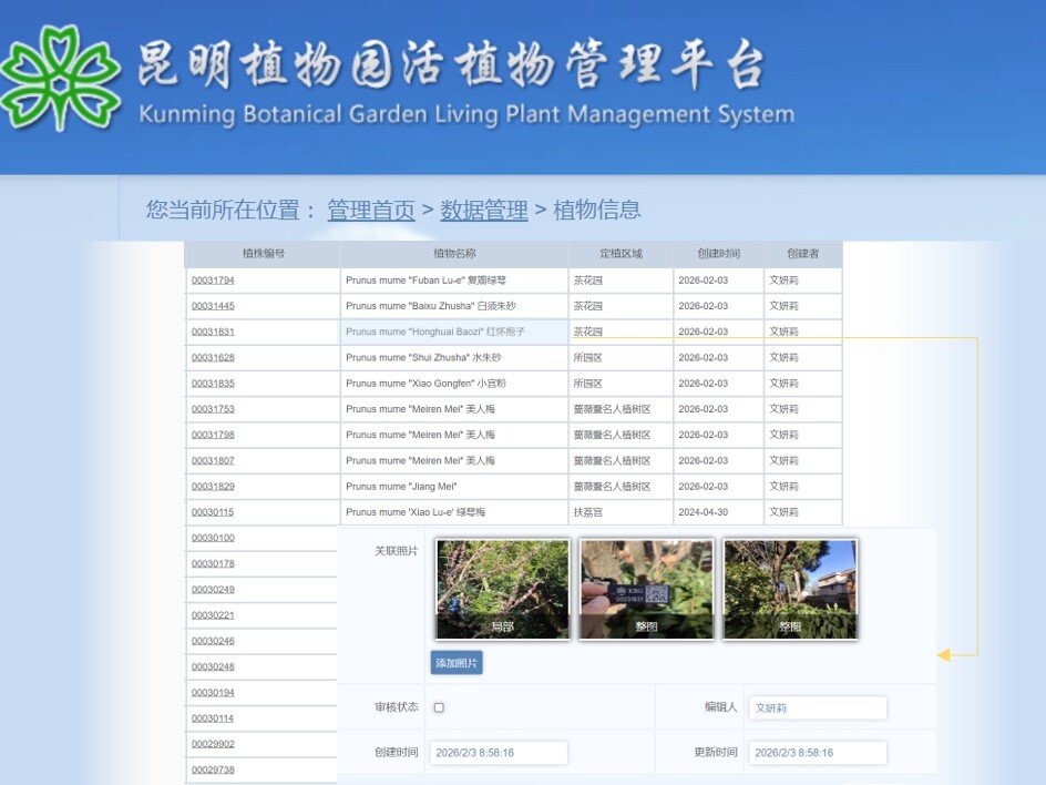 图4:我园对PIMS系统梅花品种登录信息更新示例(制图:高富)